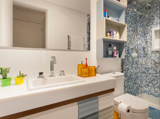 Neste caso, as torneiras monocomando garantem designs mais modernos e economia de espaço, já que ocupam o espaço de uma torneira tradicional.